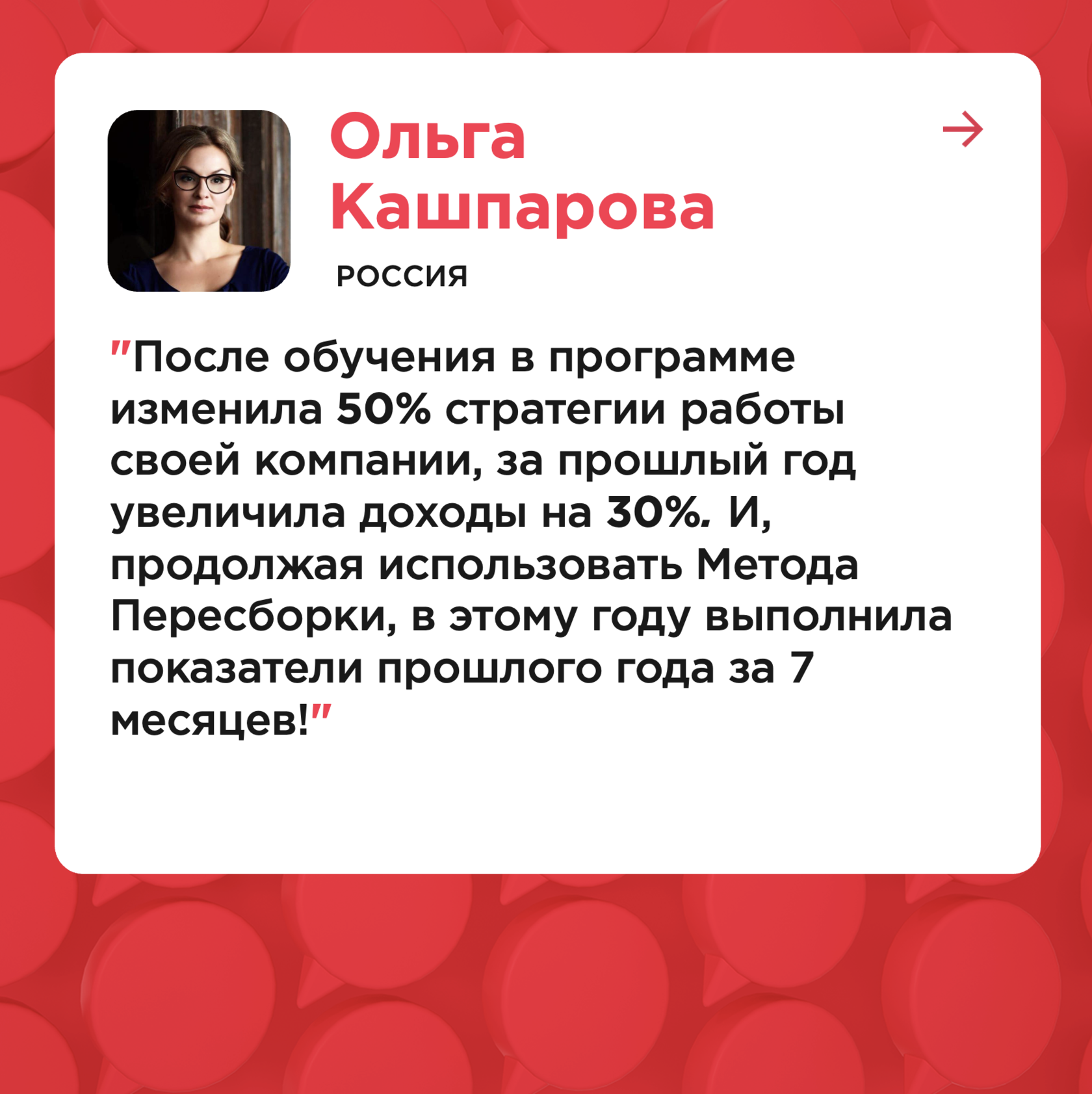 До Пересборки моя жизнь делилась на бизнес и всё, что вне его. Пересборка помогла «поженить» свободу и баланс из жизни с системностью бизнеса.